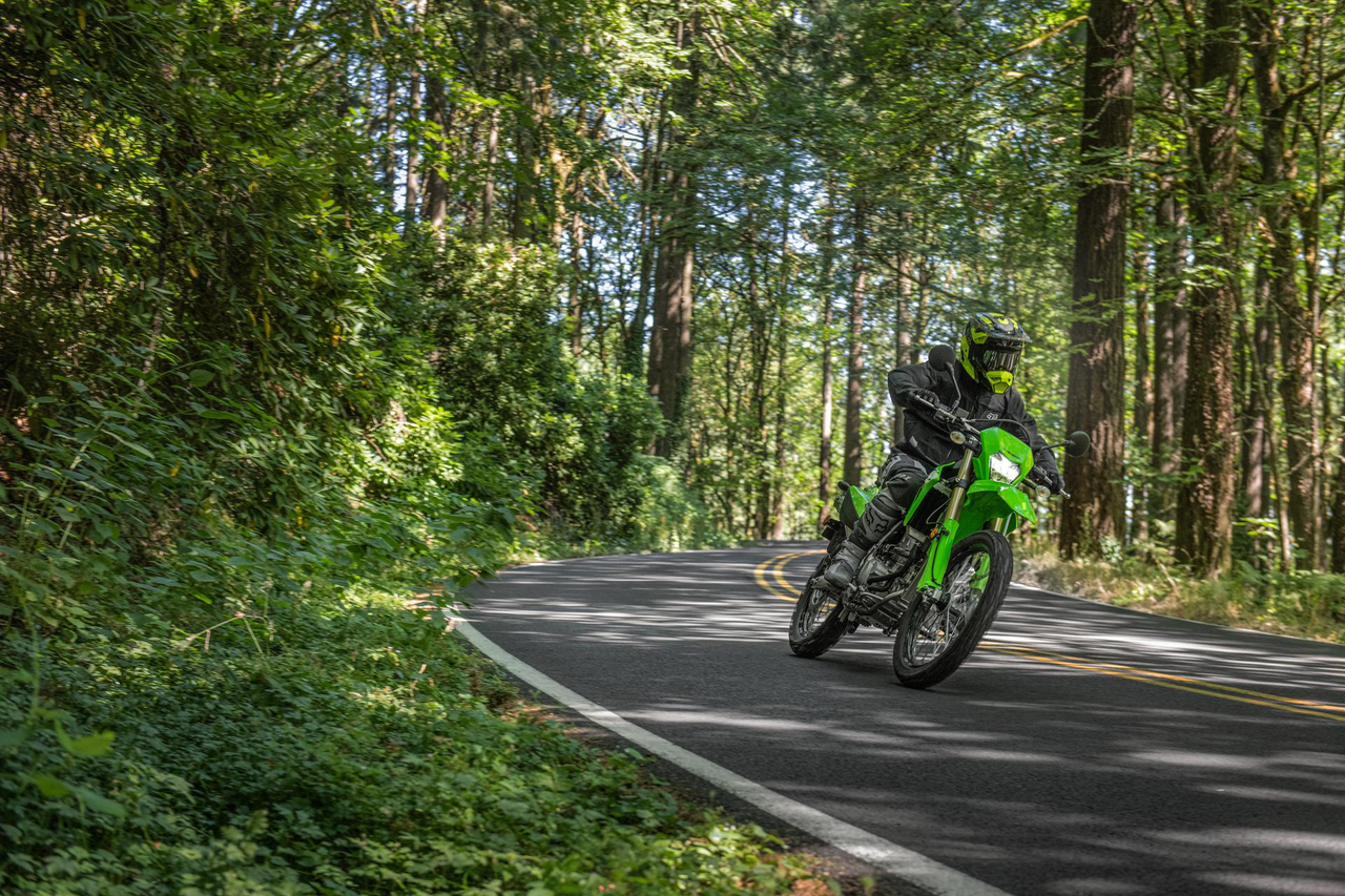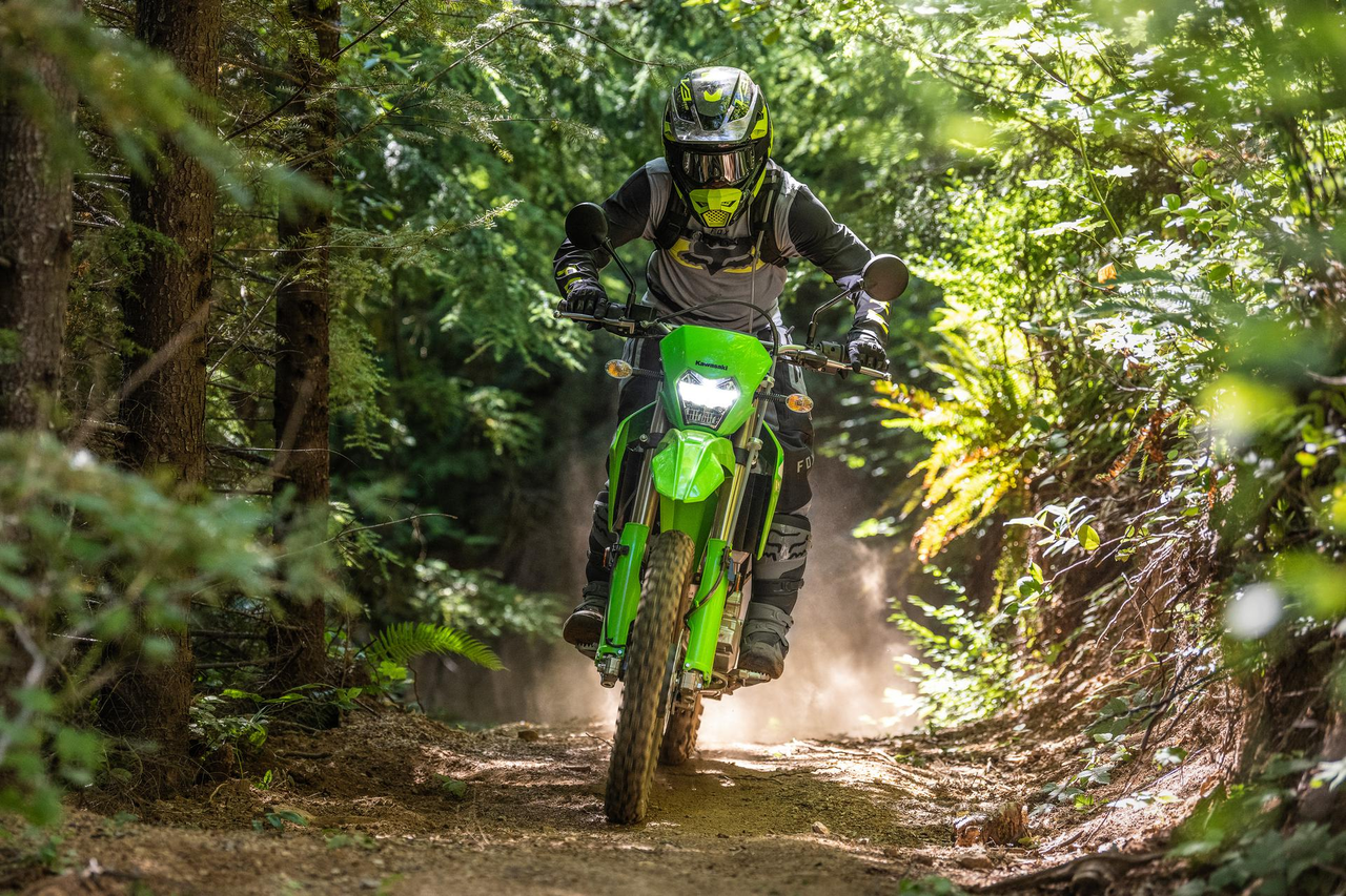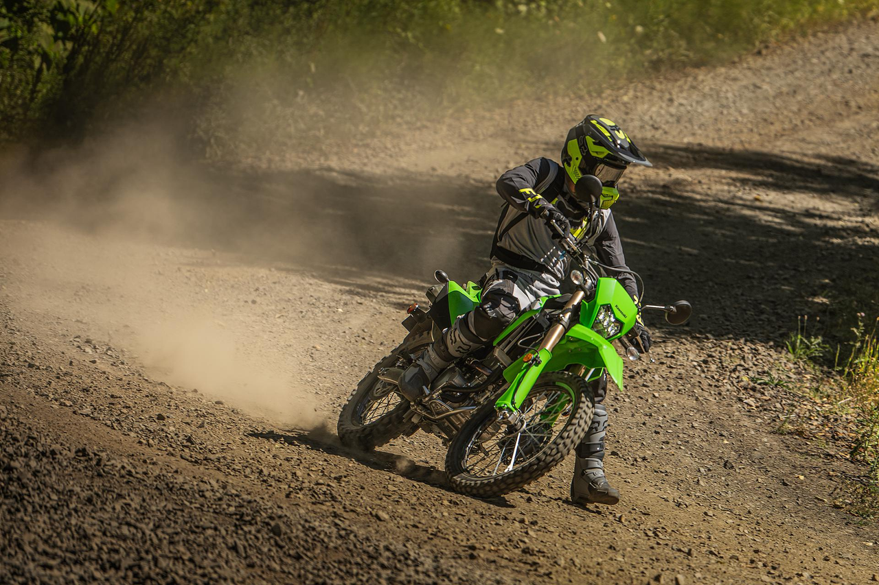 First arriving in 2021, Kawasaki’s KLX300 dual-purpose is ideal for introducing riders to the joys of motorcycle riding, whether city riding or light touring. Enduro-racer roots give the this motorcycle a strong base for off-road riding potential: featuring a responsive engine in a lightweight, rider-friendly chassis with high-grade suspension, enabling them to deliver an exciting experience on- or off-road. With its enduro racer-based ø43 mm inverted fork and fully adjustable rear shock complemented by 21” front and 18” rear spoke wheels with off-road tyres, the KLX300 is equally at home navigating city traffic or traversing a forest trail.