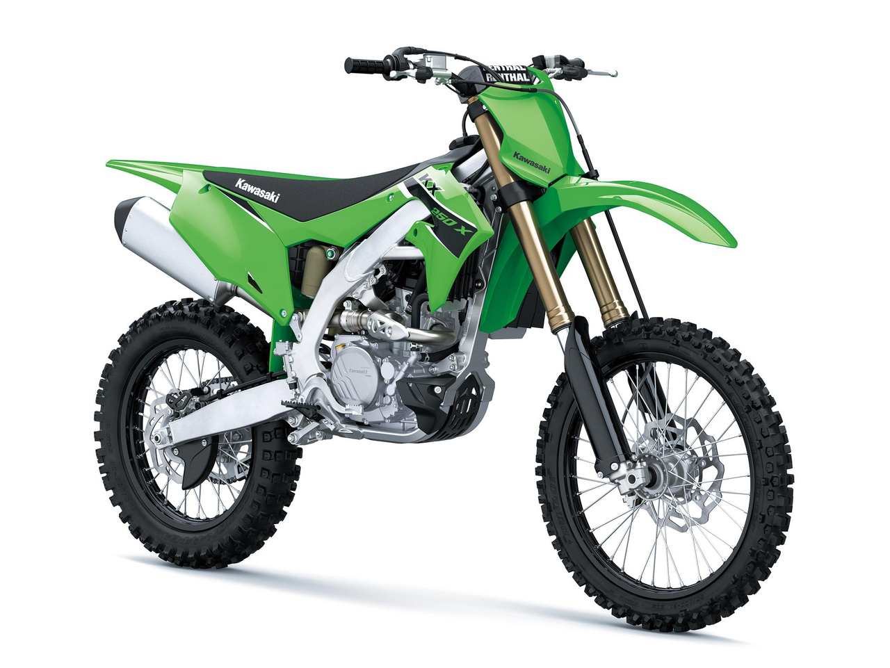 KX factory-style skid plate and a convenient side stand are both standard equipment.