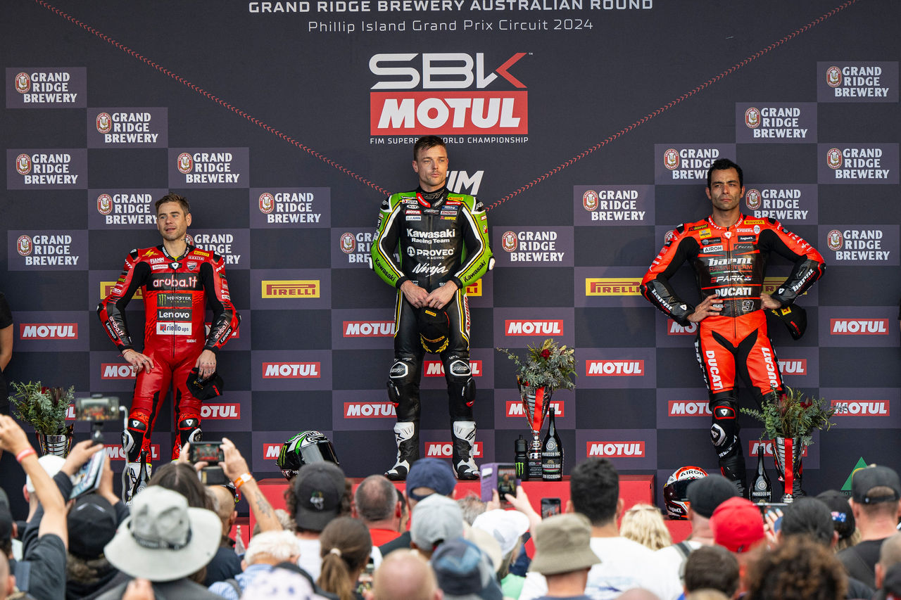 Alex Lowes earned a superb race win in the ten lap WorldSBK Superpole Race at Phillip Island and followed it up with a second victory on the Ninja ZX-10RR in a shortened Race Two. His KRT team-mate Axel Bassani scored points in each Sunday race, finishing 11th each time.